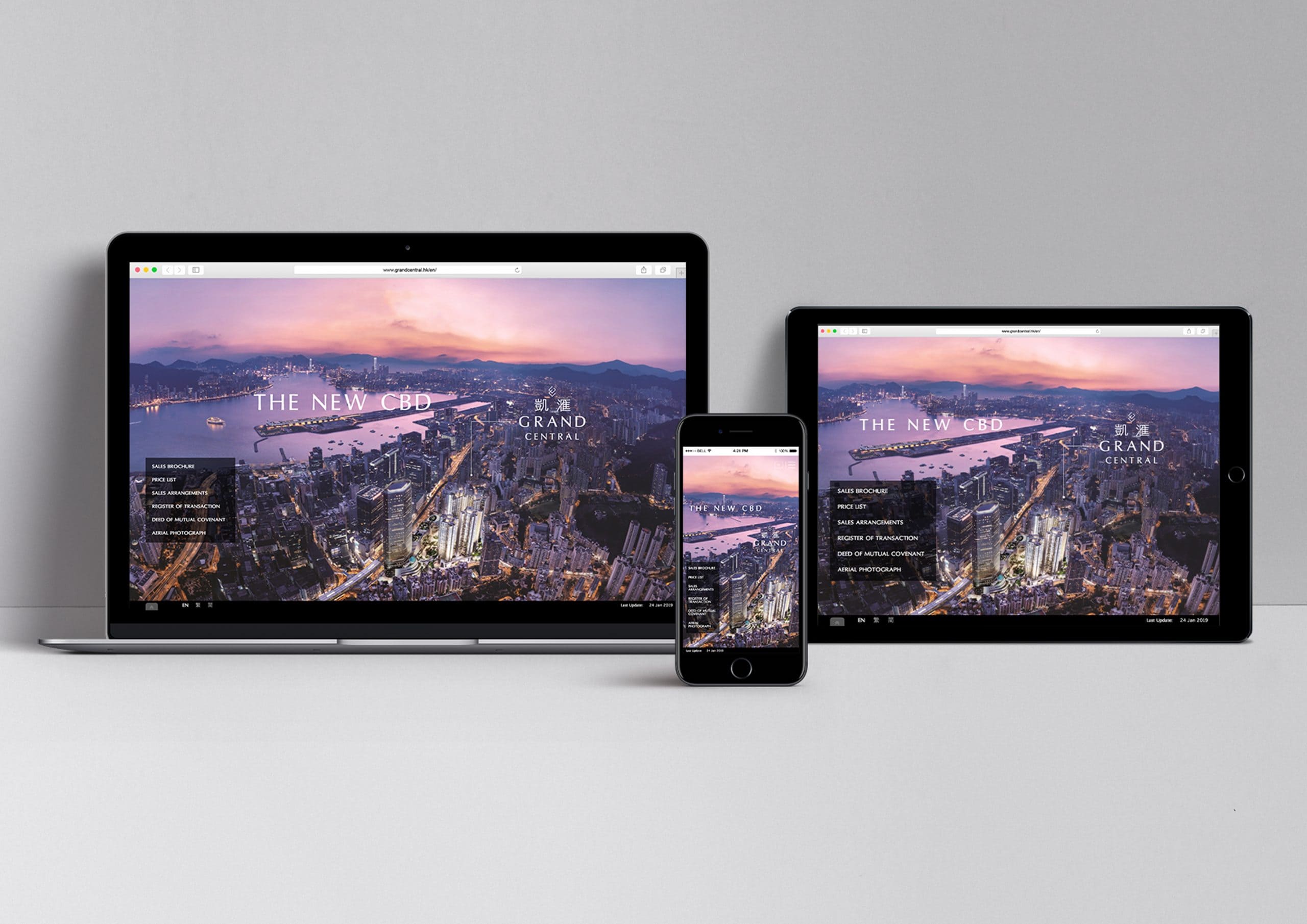 Located in Kwun Tong, Grand Central is set to become a world-class integrated city in Hong Kong’s upcoming CBD, positioning itself as an international centre for financial services, trade and shipping. With mixed-use residential, commercial, food and beverage and leisure facilities, developer Sino Land tasked Dash with the art direction, design, development and content formatting of a website to advertise the Grand Central complex.